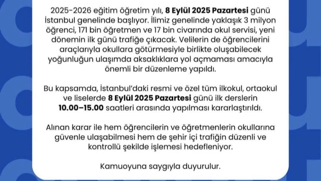 08.09.2025 OKULA GİRİŞ ÇIKIŞ SAATLERİ